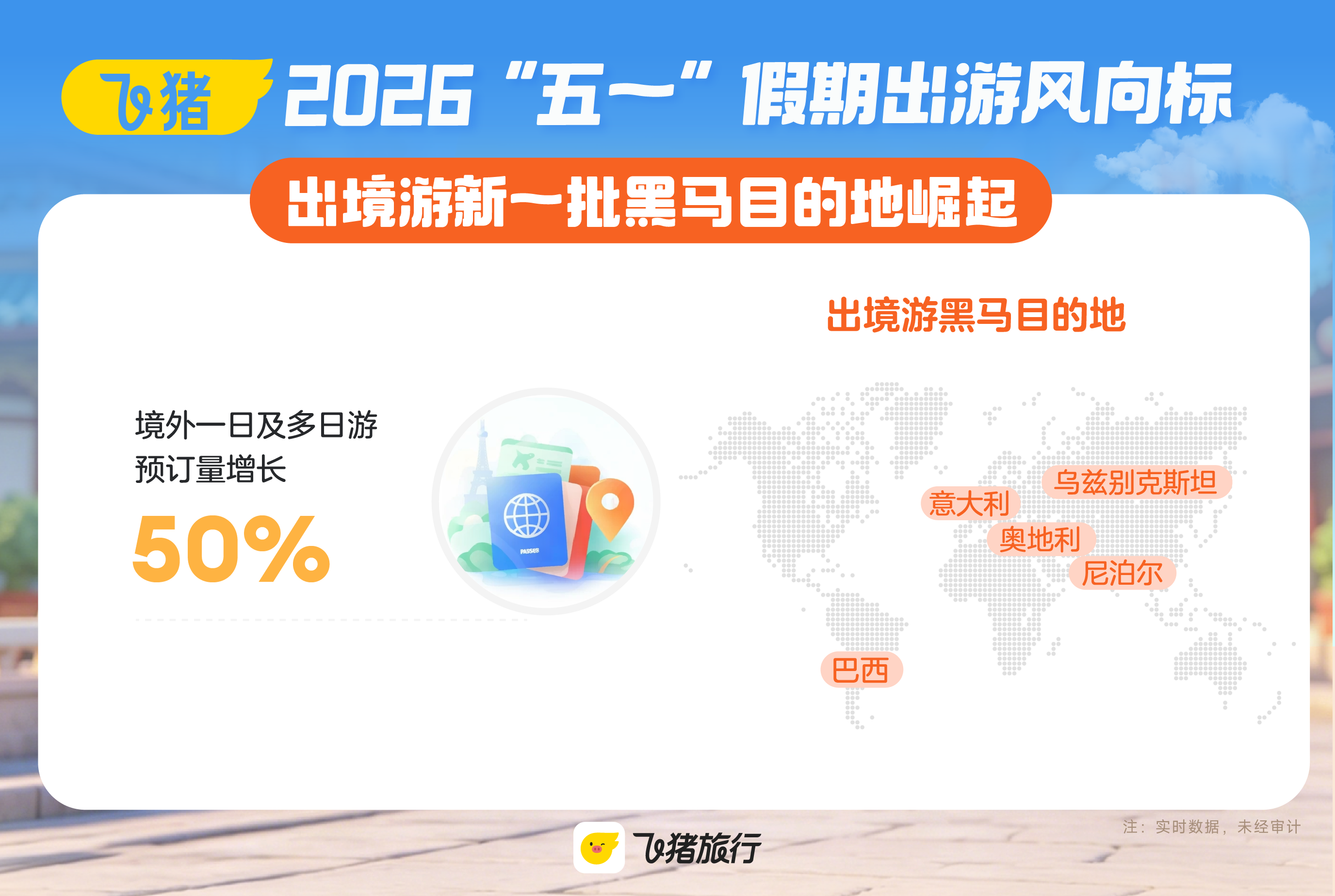 距离“五一”假期不到两周,旅游市场热度急速攀升。飞猪最新发布的《2026“五一”假期出游风向标》勾勒出今年假期旅游消费的清晰轮廓:深度体验需求集中释放,“短时间、深沉浸、高效率”成为最突出的特征。广州本地旅行社的收客数据印证,进入4月中旬,跨省游报名量环比激增144%,市场正经历从“赶路打卡”向“主题沉浸”的转型。